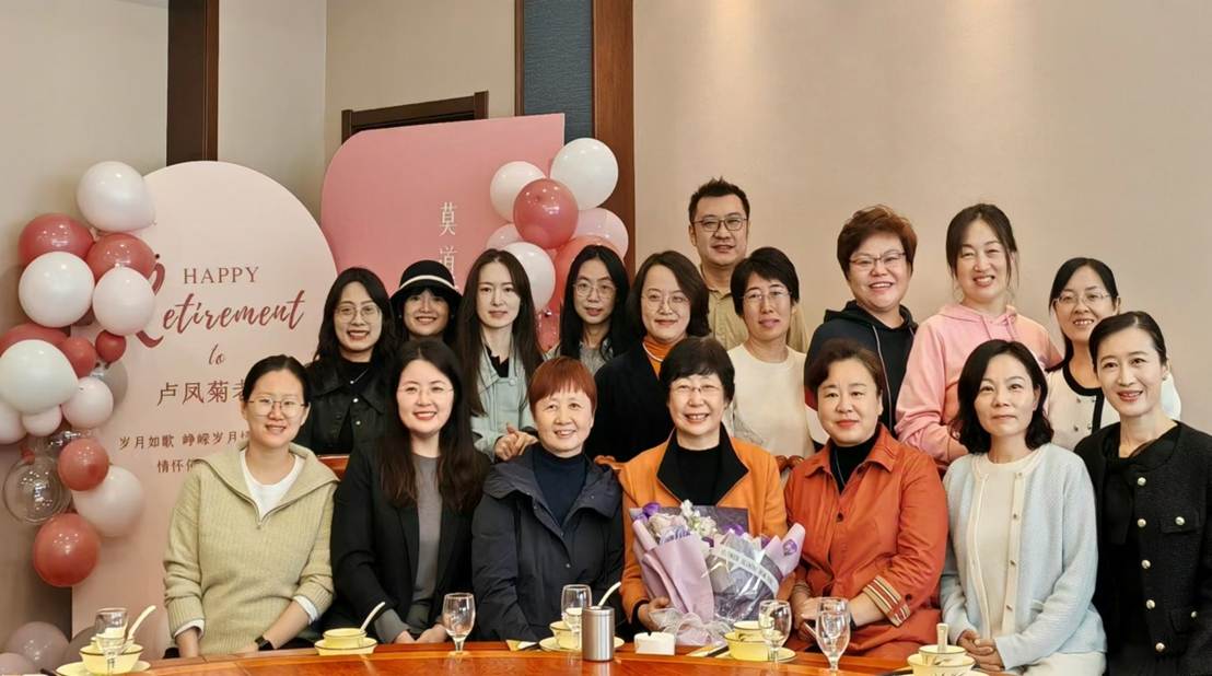 李祎为卢凤菊颁发了“荣休纪念铜盘”,并代表学院表达了对卢凤菊的感谢和祝福。王毅回顾了入职烟大以来卢凤菊给予的照顾、支持和帮助,并呼吁所有教职员工向卢凤菊学习,学习她严谨的工作态度和无私的奉献精神。教研室其他成员一一表达了对卢凤菊的感谢,并送去了最真诚的祝福。