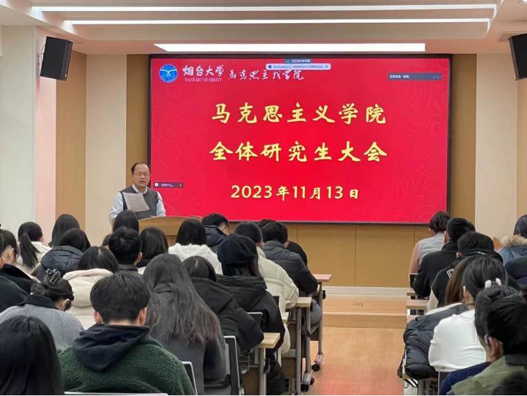 为更好发挥奖学金的育人功能、进一步增强学生的纪律意识,11月13日下午,成人论坛 在305会议室召开全体研究生大会,就奖学金评定办法及综合测评细则进行解读,就请销假和宿舍安全再强调。学院党总支副书记杜德省出席大会并讲话,辅导员和全体研究生参加。