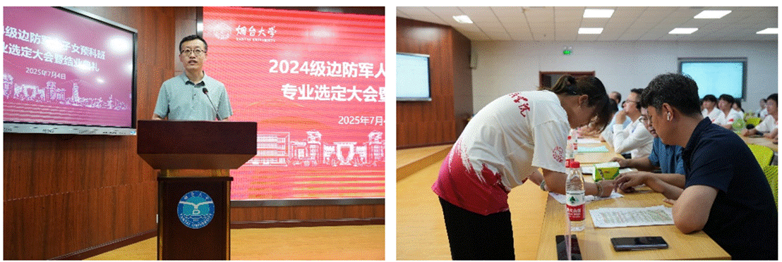 党总支书记李祎回顾了2024级边防军人子女预科班在校期间的学习、生活情况并对大家提出三点希望:永葆赤子之心,在深学笃行中筑牢信仰之基;锤炼过硬本领,在攀登知识高峰中锻造制胜之刃;砥砺坚韧品格,在直面挑战中淬炼精神锋芒。教务处副处长潘庆先详细介绍了专业名额、专业选定规则。89名预科班学生按照综合测评排名依次选到了12个学院的28个专业,将于9月份进入本科阶段的的学院开启新的学习。