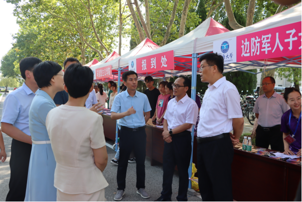 心系学生,暖心走访。学校党委书记卢国强、校长郝曙光及相关部门负责人来到预科班新生报到现场,欢迎来校报到的新生,慰问参与迎新工作的师生员工,查看新生报到接待点设置情况。“欢迎边防军人子女预科班新同学,希望你们传承军人坚忍不拔、吃苦耐劳的精神,珍惜大学时光,在烟大书写绚丽的人生新篇章!”学校领导与前来报到的预科班新生和家长亲切交流。