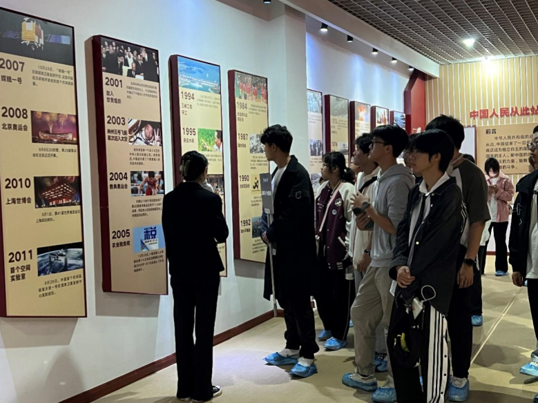 同学们在讲解员的引领下,依次参观了《序厅》《双百厅》《将军厅》《革命厅》《长征厅》《时代厅》《劳模厅》《将军印》《亲切关怀厅》《爱国主义教育书屋》《政治生活馆》十个展厅。《红心翰墨颂英魂》《灯塔颂》系列作品……一张张真实的图片、一个个动人的故事,深度展示了革命先烈无私奉献、勇于献身、为了新中国解放事业抛头颅、洒热血的赤子之心,深刻展现了新中国成立70多年间发生的沧桑巨变,以及新时代中国特色社会主义取得的伟大成就。