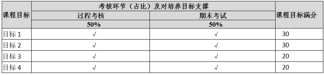 课程考核环节与课程目标关系