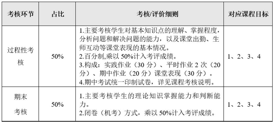课程考核方式及评价细则