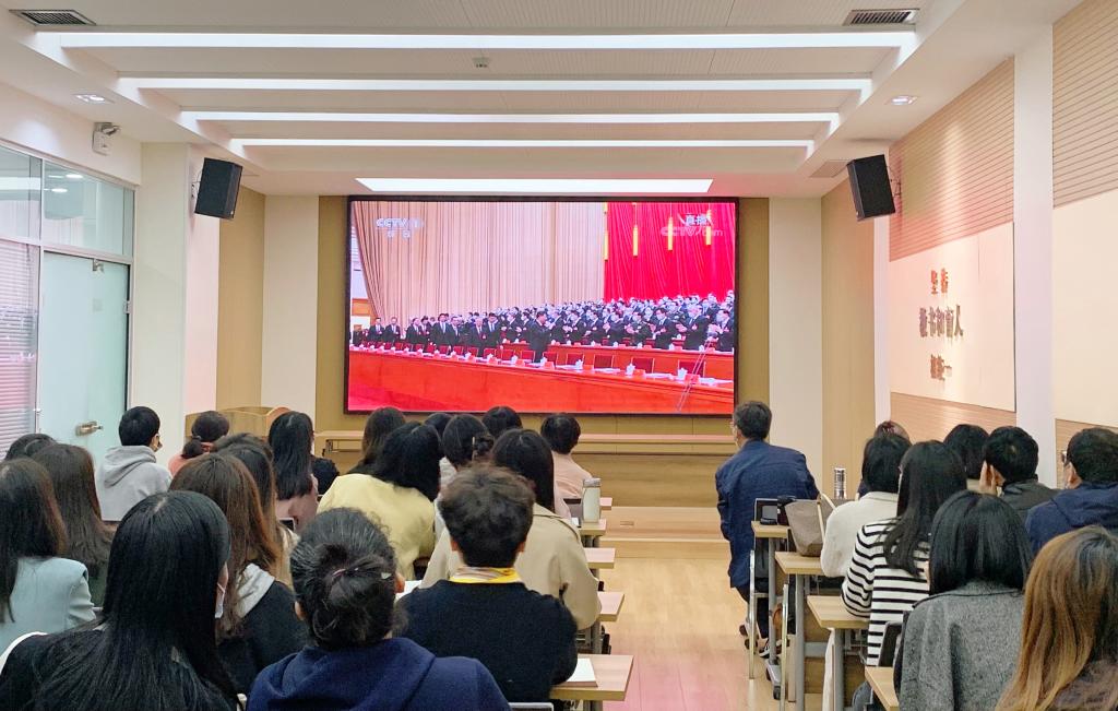 充分利用电视、网络、移动终端等多种形式组织师生收听收看大会开幕盛况,认真聆听习近平总书记报告。学院教职工和学生分别在学院305会议室和综合楼221教室集中收听收看大会实况直播。因疫情,居家健康监测教师和未返校学生自行收听收看大会盛况。学院全体师生共同参与了这一历史性时刻。