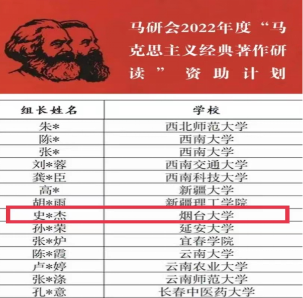 近日,中国高等教育学会马克思主义研究分会(以下简称“马研会”)2022年度“马克思主义经典著作研读”资助计划名单正式公布,由我院2021级马克思主义理论专业研究生史晓杰、赵梦洁、孟乐瑶、李凡、姜文政、胡雨媛组成的《毛泽东选集》读书小组(指导教师:杜德省、岳素芳)成功入选。