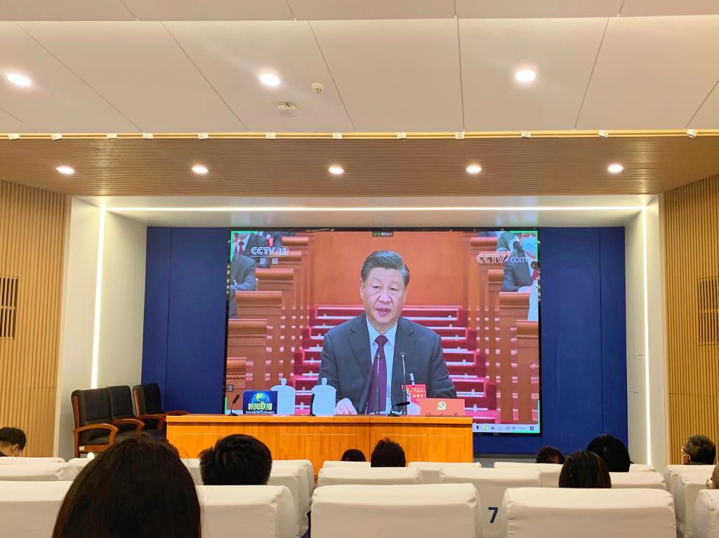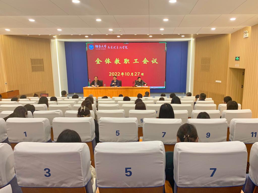在承先厅举行教职工集体学习,传达学习党的二十大精神。院领导班子成员和全体教职工参加,院党总支书记王京强主持会议。