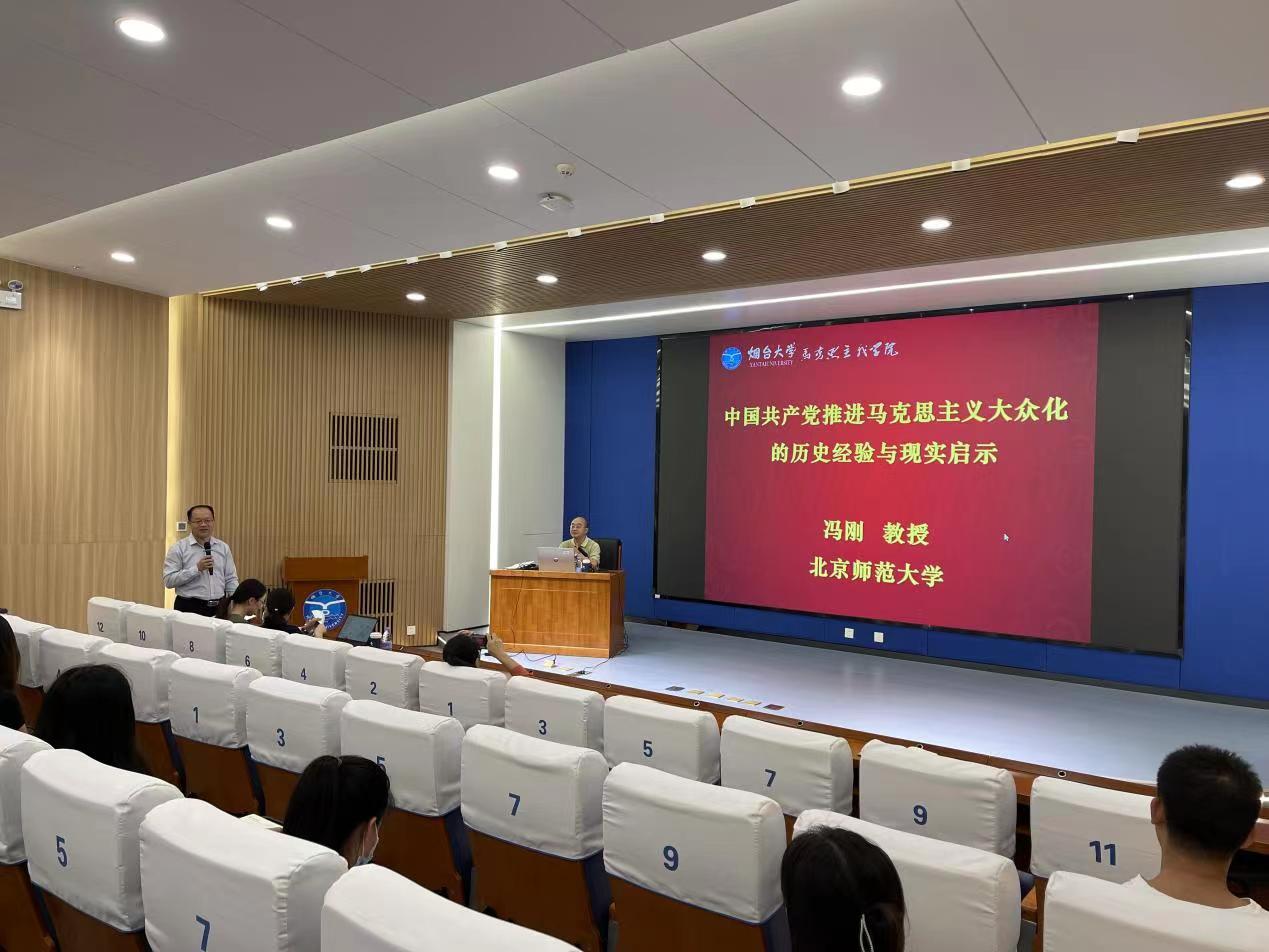 报告会上,冯刚教授深刻阐述了马克思主义大众化的内涵和实质,从革命、建设、改革、新时代四个时期,系统梳理了中国共产党推动马克思主义大众化的百年历程,从坚持战略思维、坚持对象思维、坚持辩证思维、坚持本土化思维、坚持创新思维五个方面,全面分析和总结了马克思主义大众化百年实践的经验与启示。冯刚教授认为,中国共产党之所以能在百年奋斗史中经受住各种艰难困苦、严峻考验,取得举世瞩目的伟大成就,一个重要原因就是成功推动了马克思主义大众化。马克思主义大众化的过程是理论传播和武装群众的过程,同时也是理论与实践相结合不断超越和创新的过程。也正因如此,马克思主义中国化、时代化、大众化才成为一个密不可分的整体。冯刚教授指出,百年来马克思主义在传播的过程中也实现着自我超越,在武装群众头脑的同时也完成了自我革新。未来,马克思主义大众化还将继续承担起统一思想、凝心聚力的历史使命,为中国共产党带领全国各族人民努力奋斗、实现中华民族伟大复兴贡献力量。