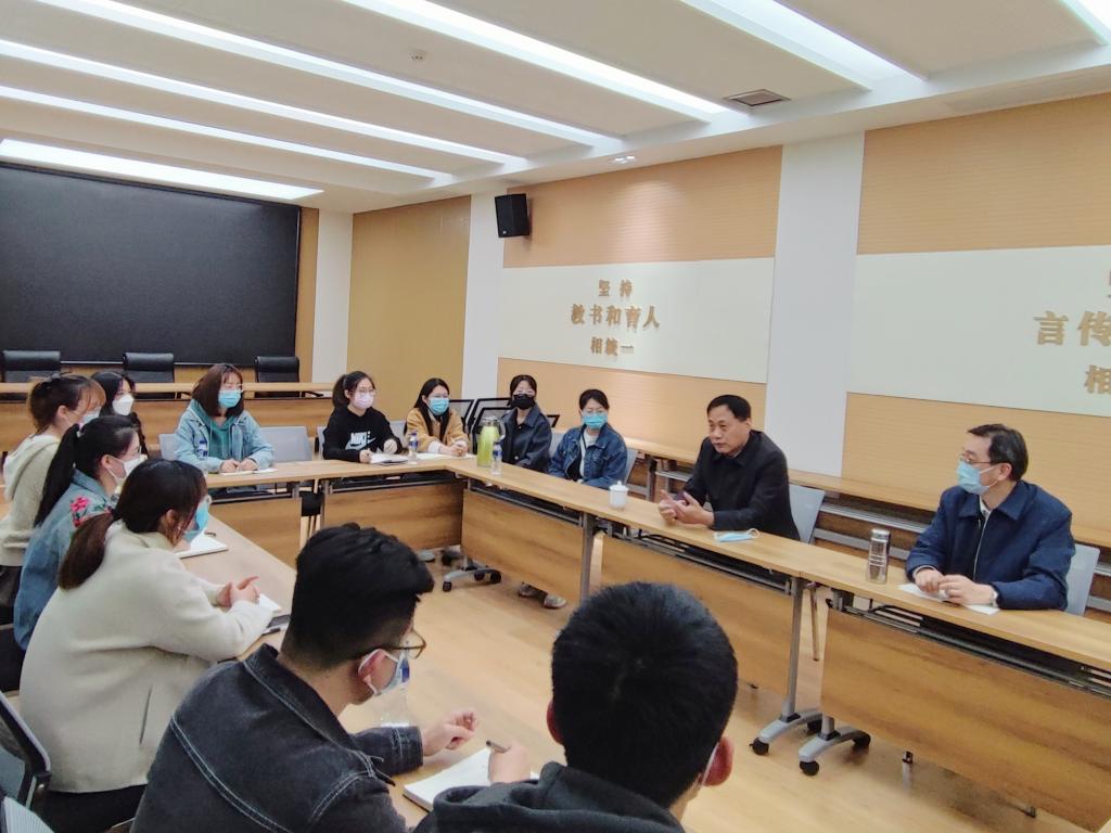 座谈会上,黄婷等6名同学做了汇报发言,张书记仔细询问、认真倾听同学们前段学习、生活情况和切身感受与困难需求,他一边聆听,不时插话,就“疫情防控期间学生内心感受与合理诉求”,与青年学生亲切交谈,互动交流,答疑释惑,气氛热烈,言语间字字透露着学校对学生的关心与关爱之情,充分彰显了学校以学生为中心的办学理念。张书记向大家介绍了前一阶段学校疫情防控整体开展情况,他指出,新学期开学以来,新冠肺炎疫情严峻复杂,防控工作是学校压倒一切头等大事,学校深入贯彻习近平总书记重要指示精神,按照省市工作部署,以坚决的态度、有力的行动,高效协同做好居室健康观察、核酸检测、志愿服务、后勤保障、线上教学等各项工作,不断优化防控措施,集中力量攻克难点、消除堵点,经过全校上下共同努力,我校疫情防控工作取得阶段性成效,确保了师生生命安全和身体健康,确保了学校改革发展大局稳定,这是学校事业发展的基础和关键。成绩来之不易,必须倍加珍惜。