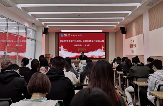 研究生党支部在305多功能会议室举办抗美援朝专题党课,院党总支书记王京强为全体研究生和部分新入职教师,讲授题为“铭记抗美援朝伟大胜利,汇聚民族复兴磅礴力量”的党课。