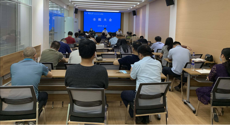 在多功能会议室召开全体教职工会议,进一步学习总书记重要讲话精神,部署学院高质量发展。会议由学院党总支书记王京强同志主持。