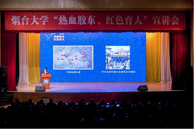弘毅厅举行,能容纳700余人的报告厅座无虚席。副校长邓昌亮、烟台市文明办副主任吕忠民、烟台市委讲师团团长许维江、胶东(烟台)党性教育基地管理办公室郭星辰以及来自山东广播电视台、凤凰网山东运营中心、大众网、胶东在线等媒体的嘉宾出席宣讲会。