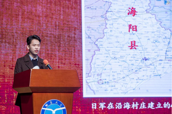 首场宣讲会分三个篇章分别讲述了“烟台山开埠历史、刘公岛甲午海战和海阳地雷战”的故事。宣讲者饱含深情,通过丰富的史料展示和生动的临场演绎,真实地还原了胶东这片热土上一个个可歌可泣的革命故事,一幕幕气壮山河的壮丽篇章,一位位有血有肉的英雄儿女,现场气氛热烈、掌声雷动。临近尾声,宣讲者动情地说,这片土地的深沉与厚重,值得我们热爱;胶东人民在这片土地上洒下的汗水与热血,值得我们热爱;胶东人民在共产党的领导下,在这片土地上创造出的成就与奇迹,值得我们热爱。让我们立足烟台、融入烟台、服务烟台,让我们的人生在这片土地上发光出彩,让我们用汗水与热血为这片土地描绘出更加美好的未来!