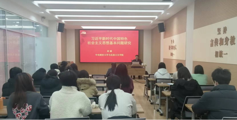 黄刚教授以学术梳理的方式,从如何开辟马克思主义中国化、时代化新境界的历史责任,如何以中国式现代化推进中华民族伟大复兴的使命任务,如何以伟大自我革命引领伟大社会革命的重要要求,如何把握习近平新时代中国特色社会主义思想的世界观和方法论等角度,对习近平新时代中国特色社会主义思想进行理论性、系统性阐释。他指出,中国共产党作为百年大党,之所以依旧风华正茂,关键在于我们党有科学的理论作指导,在于我们党根植于中华优秀传统文化和中华民族精神的丰厚土壤,在于我们党与时俱进不断开拓马克思主义理论新境界,希望青年学生能够从理论和实践的双重维度深入学习,认真体会,树立正确的人生观、世界观和价值观,坚定永远跟党走的理想信念。