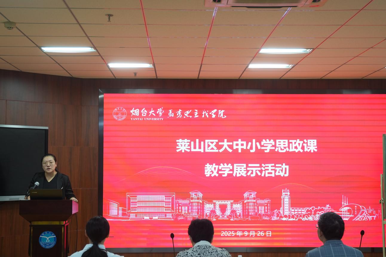 为深入贯彻落实习近平总书记关于思政课建设的重要指示精神和省委宣传部、省教育厅《大中小学爱国和国防教育共同思政课工作方案》相关要求,切实提升思政课育人实效,9月25日至26日,莱山区大中小学思政课集体备课会暨教学展示活动在我校举行,烟台市教育局思政科、莱山区教学研究室有关负责同志,同济大学、山东大学(威海校区)、鲁东大学等高校专家学者,莱山区部分中小学和成人论坛