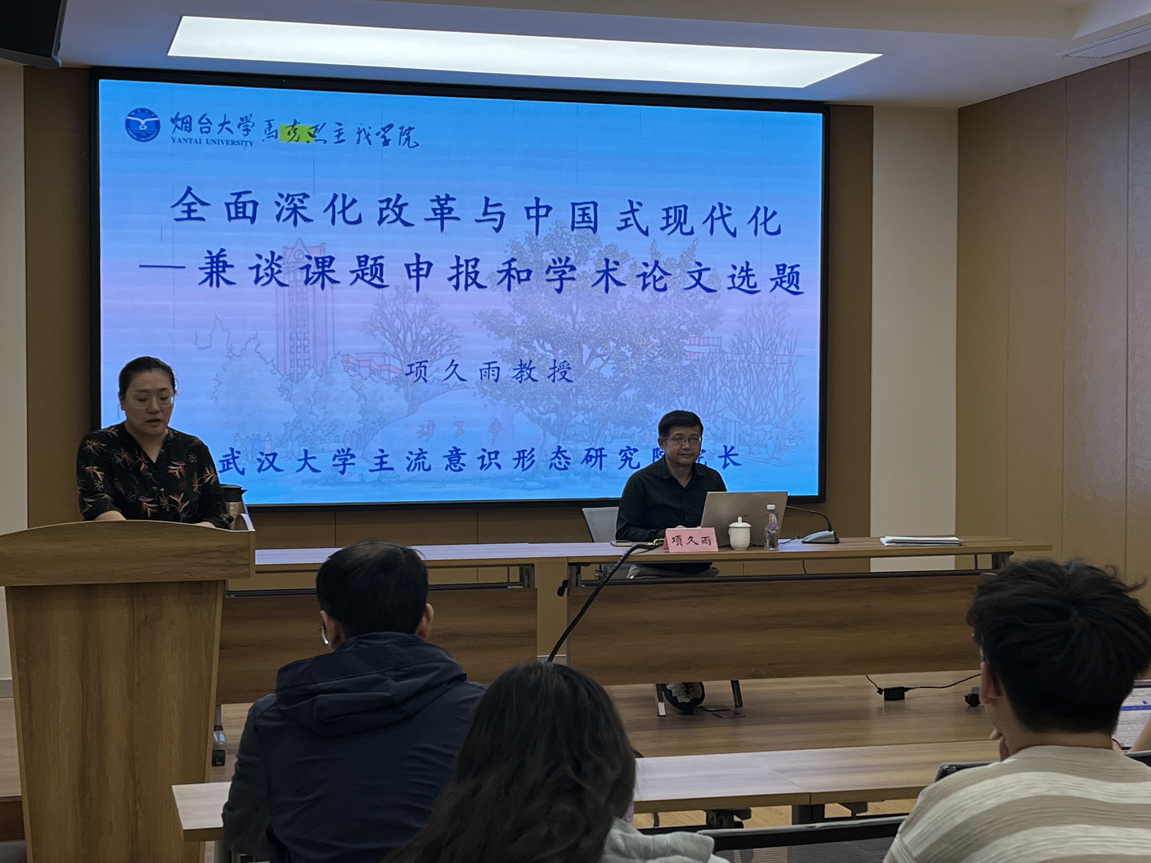 在报告过程中,项久雨教授结合自身学术研究经验和成果,对党的自我革命与中华优秀传统文化、中国改革开放道路、中国式现代化的理论体系等具有研究意义和价值的选题进行了分享。报告最后,项久雨教授与同学们进行了深入的交流互动,对同学们的问题给予了耐心解答。