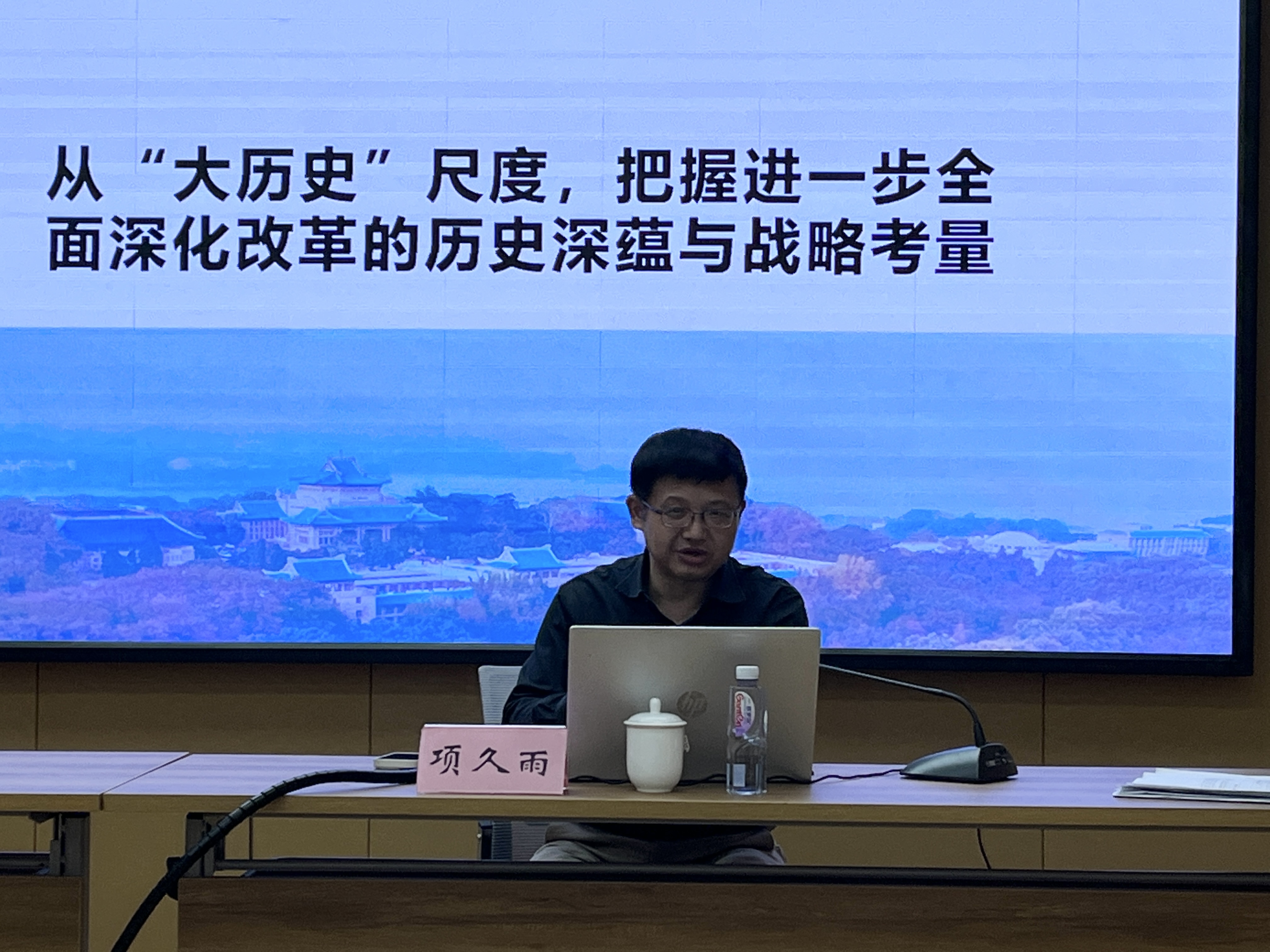 党的二十届三中全会审议通过的《中共中央关于进一步全面深化改革 推进中国式现代化的决定》,明确提出全党必须自觉把改革摆在更加突出位置,紧紧围绕推进中国式现代化进一步全面深化改革。项久雨教授在报告中从“大历史”尺度、“结构性”视角和“未来性”向度三个方面深刻解读了进一步全面深化改革与推进中国式现代化的关系。