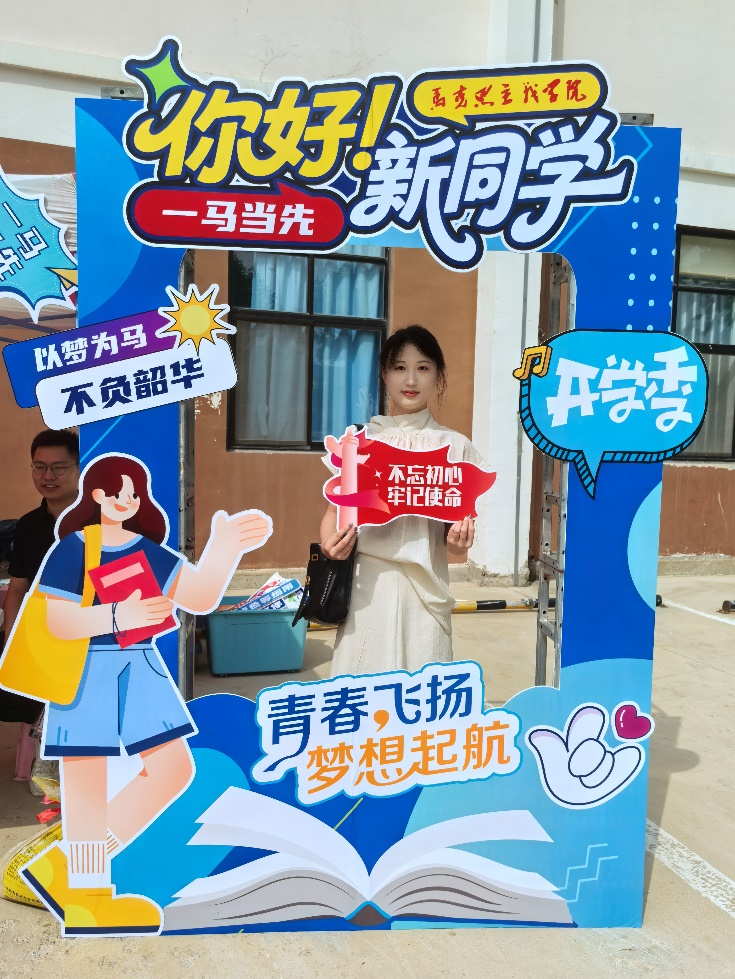 此外,学院还精心设计了彰显马克思主义理论特色的纪念手卡,在迎新展台前设置马理论特色打卡墙为每位新生定格入学首张珍贵合影。