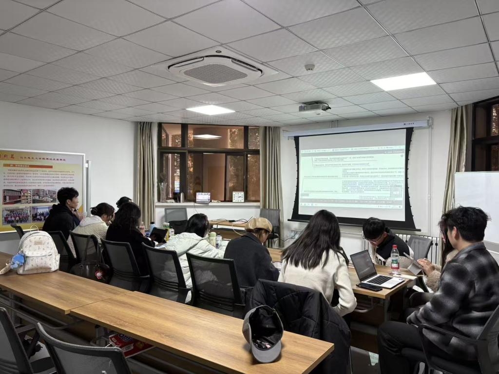 最后,两位督导员就本次研读活动的开展情况进行了点评。他们热情肯定了两个读书小组互学互促的积极性、主动性以及源于文本而高于文本的研读成效,先后就活动的流程优化、材料准备等方面给出了参考经验,督导员的诚恳建议得到了与会同学的认真听取和一致认同。