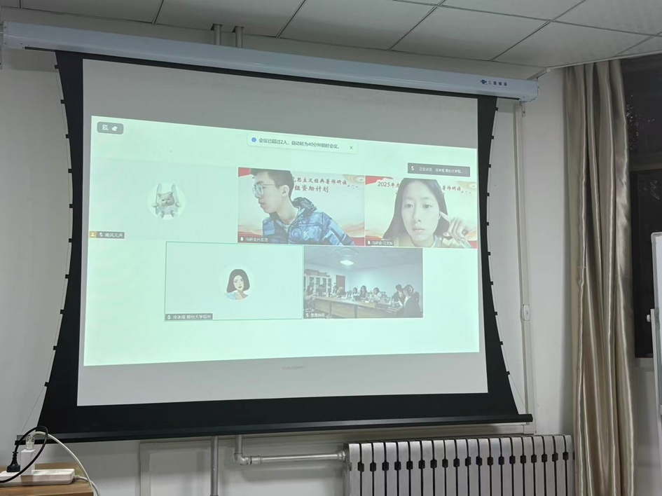102教室联合开展研读,两名组长冷冰瑶同学、徐芊清同学担任主持人,马研会督导员孙宏忠、刁文灿同学线上参会,现场研讨氛围热烈。