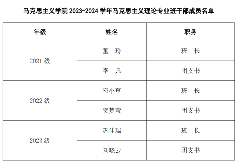 我院研究生会、各班级班干部换届工作顺利完成,本着“公开、公平、公正”的原则,经过资格认定、审核、面试、竞选等环节,并报成人论坛 团委同意、党总支审批,现将新一届研究生会、各班级班干部成员名单公布如下: